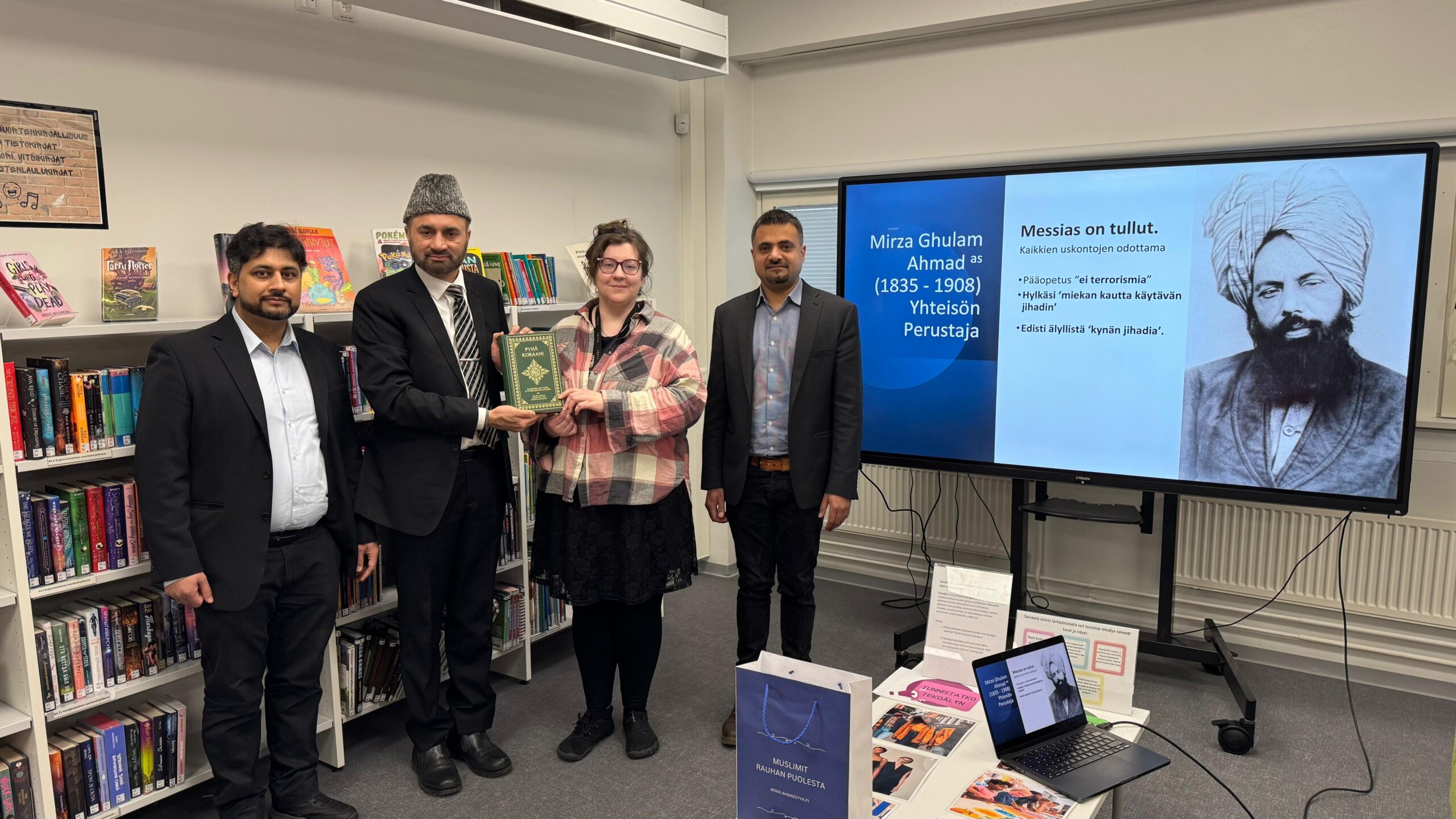 Tapaamisen jälkeen valtuuskunta vieraili Liedon kaupunginkirjastossa ja tapasi kirjastopalveluiden johtajan, rouva Iiris Mannosen. Vierailun aikana kirjastolle lahjoitettiin Koraanin suomenkielinen käännös kulttuurisen ymmärryksen edistämiseksi ja islamin opetusten saattamiseksi yleisön saataville. Rouva Mannonen ilmaisi kiitollisuutensa vierailusta, joka välitti onnistuneesti yhteisön sanoman rauhasta ja palvelusta ihmiskunnan hyväksi.