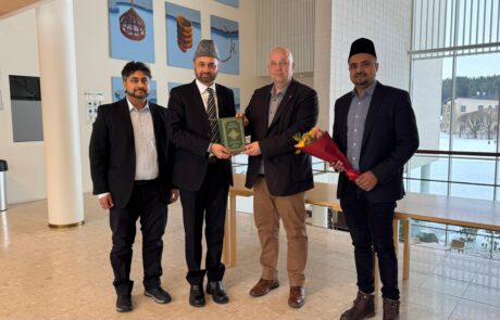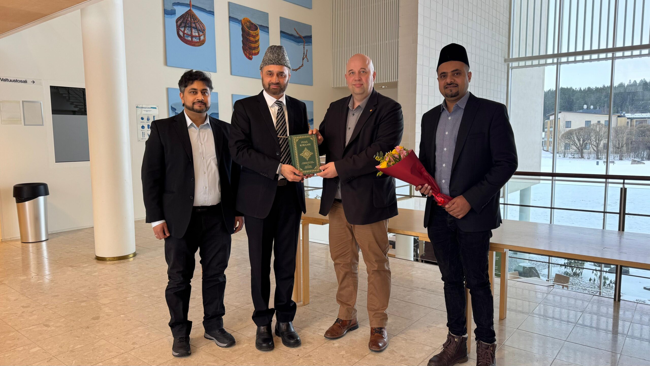 Allah’n armosta 11. helmikuuta 2026 Ahmadiyya Muslimiyhteisö Suomessa -yhteisön valtuuskunta, johon kuuluivat lähetyssaarnaaja ja maajohtaja Shahid Mahmood Kahloon, kansallinen varapuheenjohtaja Rizwan Ahmad Dogar sekä kansallinen tabligh-sihteeri Fareed Ahmad, tapasi Liedon pormestarin, herra Mika Ingin. Tapaaminen järjestettiin lämpimässä ja kunnioittavassa ilmapiirissä, ja keskusteluissa keskityttiin yhteisön työhön rauhan, uskontojen välisen vuoropuhelun ja yhteiskunnallisen hyvinvoinnin edistämiseksi. Valtuuskunta esitteli myös Hänen Pyhyytensä, Hazrat Mirza Masroor Ahmadin (aba), maailmanlaajuisia rauhanaloitteita, joita pormestari arvosti suuresti. Tilaisuuden kunniaksi pormestarille luovutettiin Koraanin suomenkielinen käännös.